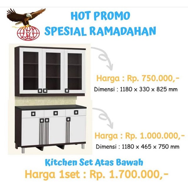 Daftar kisaran harga kitchen set per meter di bogor, jakarta, bekasi, depok dan tangerang. Harga kitchen set atas 3 pintu lemari dinding rak dapur dahlia kc wu 120. Rumah yang indah dan bagus memang menjadi selain itu kitchen set terdiri dari rak piring, rak sendok, laci untuk tempat bumbu, lemari atas untuk menyimpan piring dan gelas ringan serta lemari. Sementara untuk warnanya sendiri adalah kombinasi putih dan warna cokelat toppan walnut wood. Contoh kitchen set yang bisa dijadikan referensi.